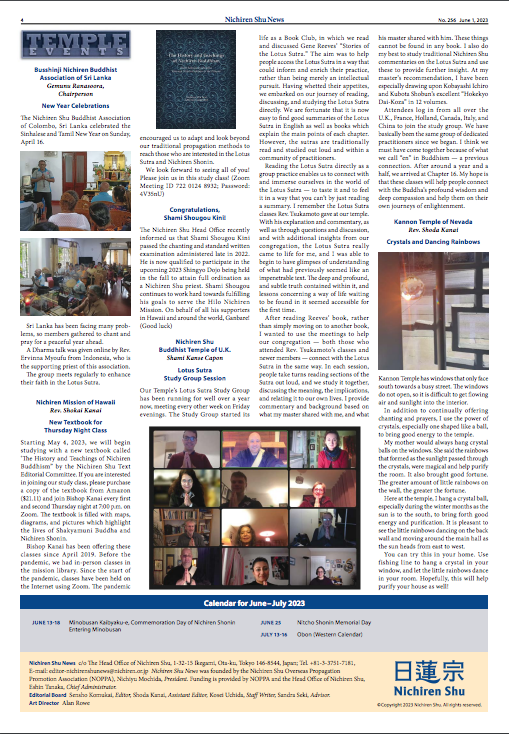 Onze tweewekelijkse Lotus Soetra-studiegroep staat in de nieuwe editie van het officiële nieuwsblad van Nichiren Shu, Nichiren Shu News. Het stuk is geschreven door Shami Kanse Capon, die de dagelijkse leiding heeft over onze tempel in Londen.